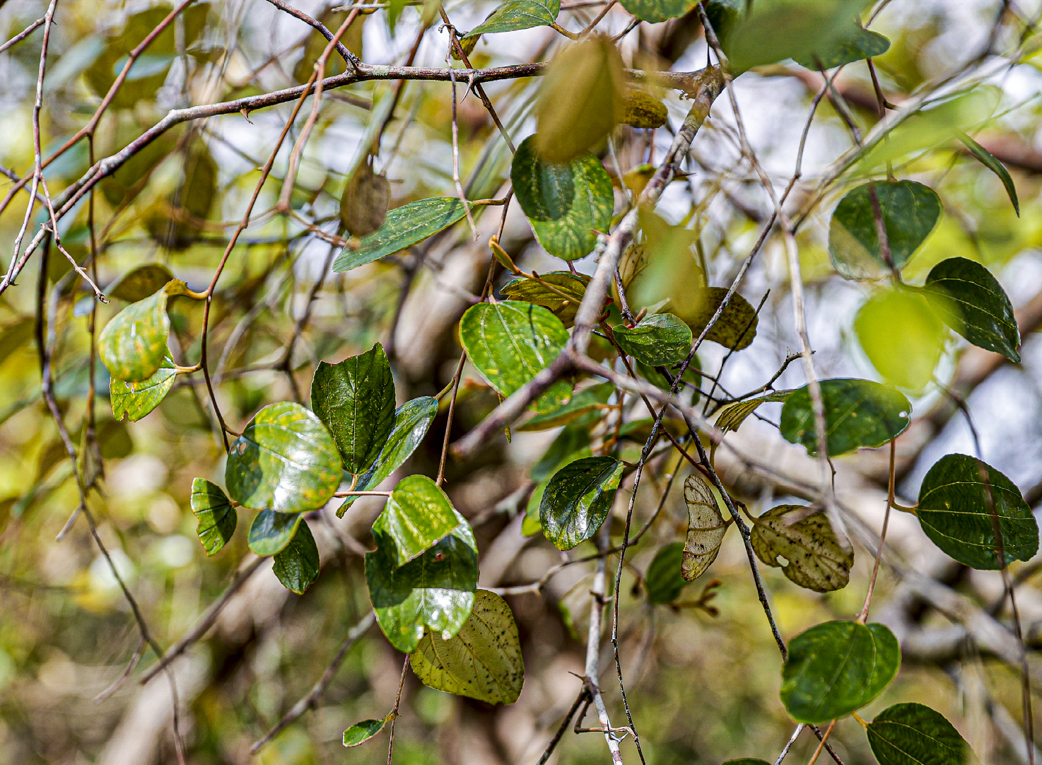 ​​Alstonia angustiloba, is a tree up to 40 m tall, with a pagoda-shaped crown, and tiered branching. It has bark dark grey, smooth when young, becoming slightly cracked when it gets older. The wood is pale yellow and soft. It is the preferred local food plant for caterpillars of the moths. Its flowers are also insect-pollinated.