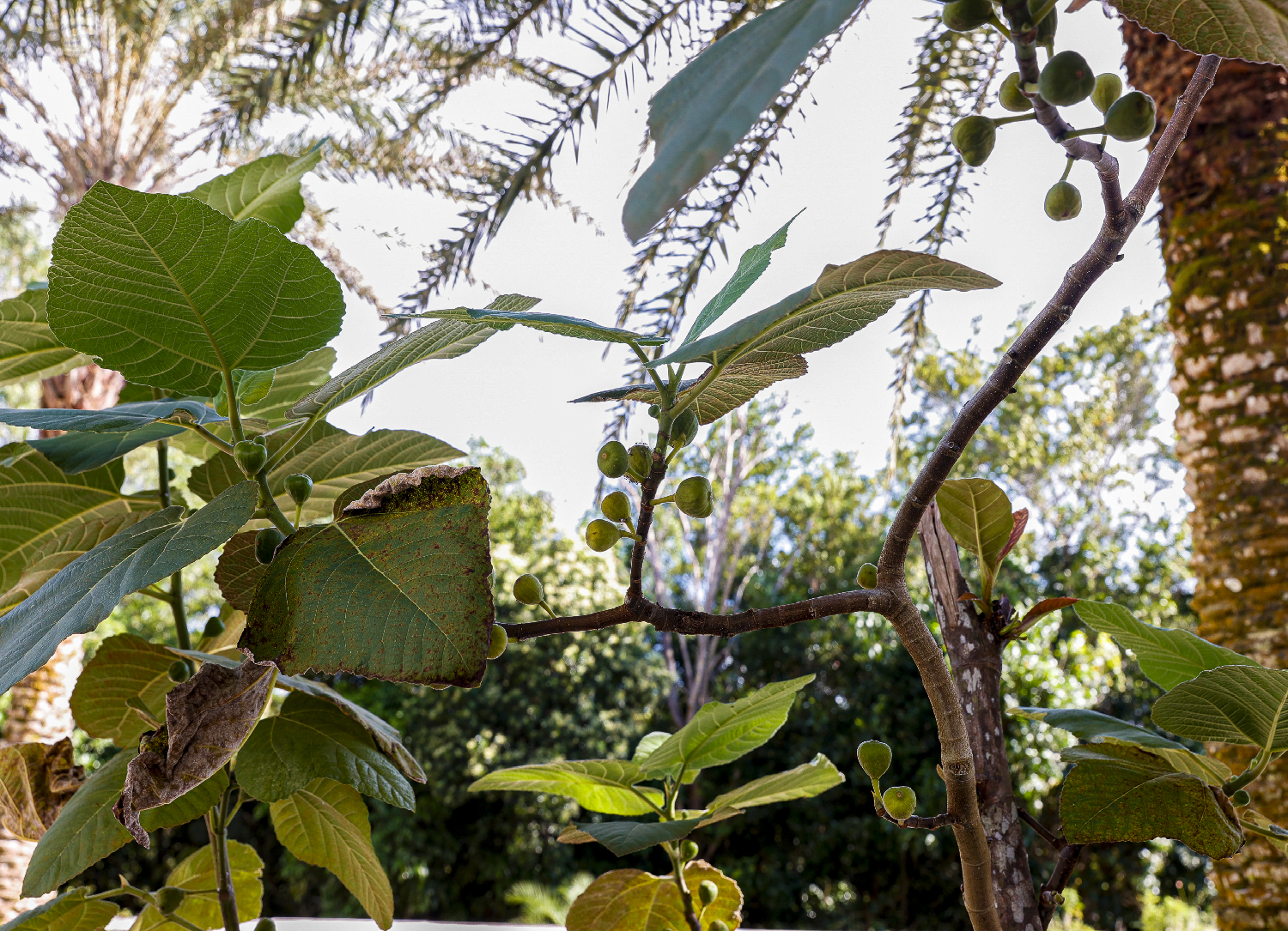 Ficus carica, commonly known as the common fig, is a deciduous tree or large shrub that can grow up to 7–10 meters tall. It has smooth, gray bark and a dense, spreading canopy. The leaves are large, deeply lobed, and rough on the upper surface, providing a distinctive look…