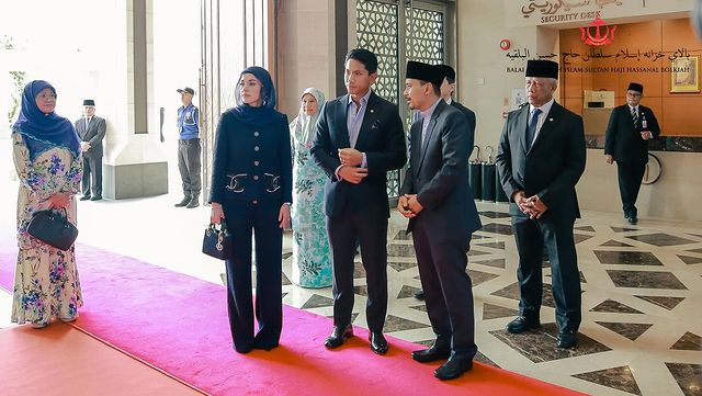 Upon arrival His Royal Highness and Her Royal Highness were greeted by Yang Berhormat Pehin Datu Lailaraja Major General (B) Dato Paduka Seri Haji Awang Halbi bin Haji Mohd. Yussof, Minister in the Prime Minister’s Department and Minister of Defence II, as Chairman of the Advisory Board of Balai Khazanah Islam Sultan Haji Hassanal Bolkiah; and Yang Berhormat Dato Seri Setia Dr. Awang Haji Mohd. Amin Liew bin Abdullah, Minister in the Prime Minister’s Department and Minister of Finance and Economy II, as a Member of the Advisory Board of Balai Khazanah Islam Sultan Haji Hassanal Bolkiah.