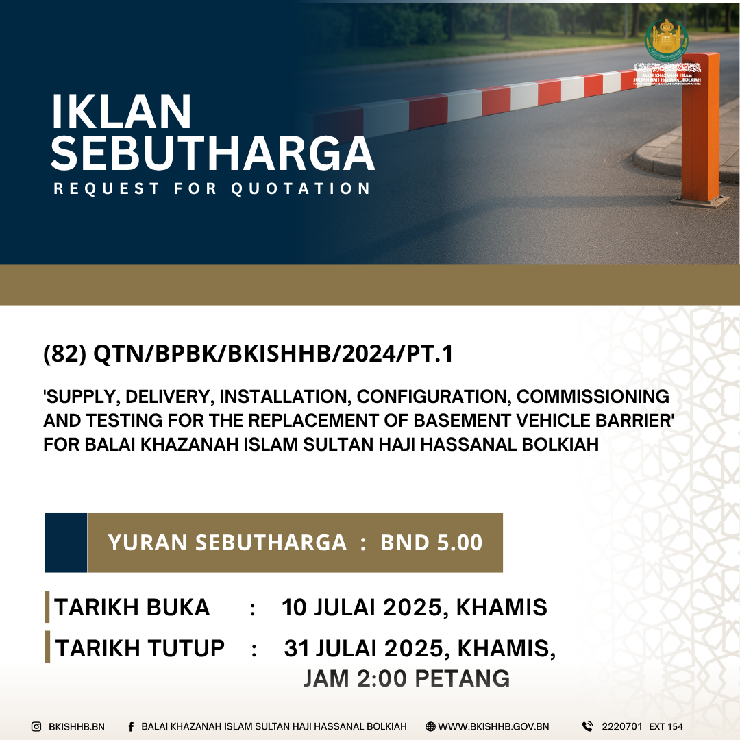 To view the latest quotations at Balai Khazanah Islam Sultan Haji Hassanal Bolkiah, please pay close attention to the “If interested, please contact/collect” column for instructions on how to collect or inquire further about the requested quotations or tenders. Ensure to follow the steps outlined in the column for proper collection or contact details.